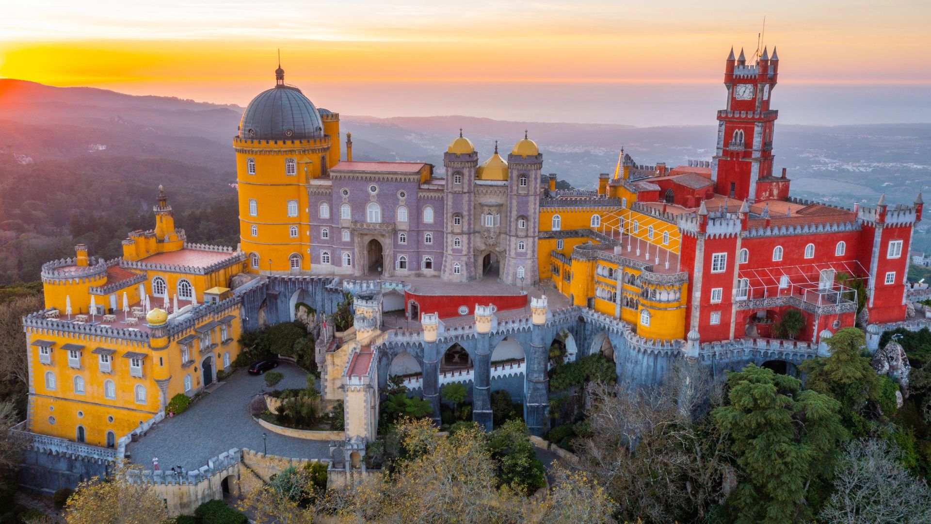 Pena Palace looks like a Disney castle but it's real. Perched on a hilltop in Sintra, this colorful palace mixes Gothic, Moorish, Renaissance, and Manueline styles in bright yellows, reds, and purples. Built in the 1840s on the ruins of a monastery, it's one of Europe's finest examples of Romanticism.