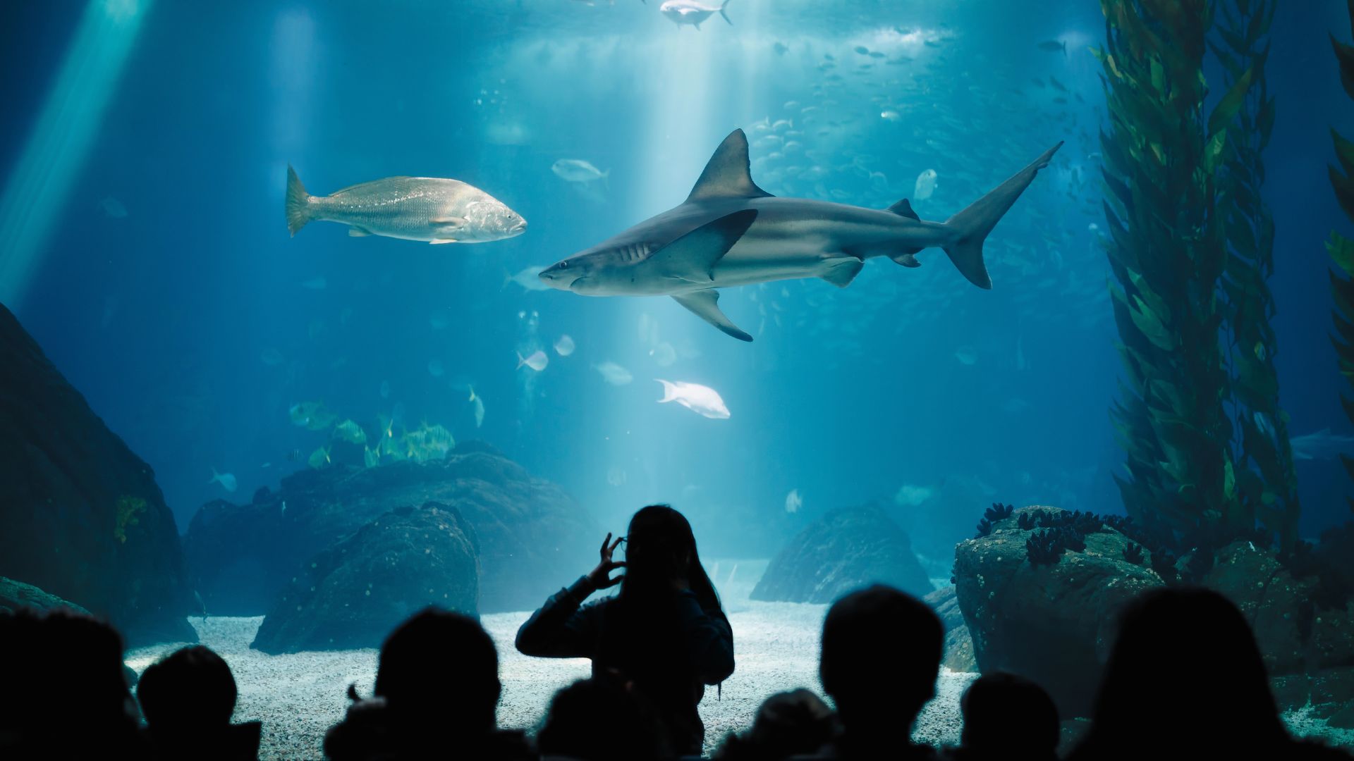 The surrounding tanks showcase different ocean habitats: Pacific, Atlantic, Indian, Antarctic. The sea otter tank always has a crowd because they're adorable. Penguins waddle around in their habitat. Jellyfish float in mesmerizing displays.
